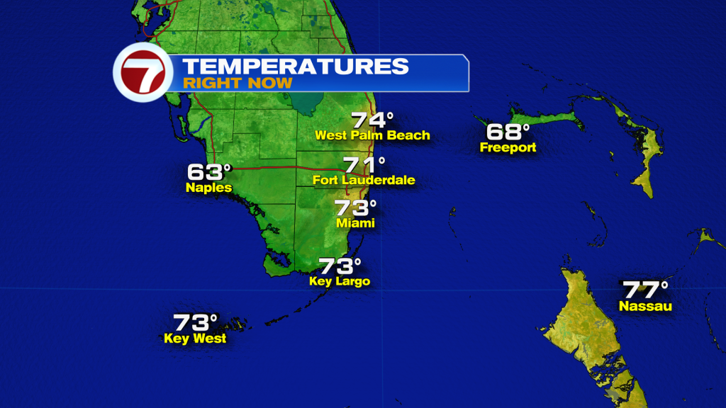 Today South Florida can expect another mostly quiet day. After a quiet start, afternoon high temperatures will reach the lower 80s, which is typical this time of year. A few spotty to isolated showers will be possible as our winds turn off the water.  Another change to the weather pattern today (compared to yesterday) will be the building breeze this afternoon and evening. Winds will turn off the water and increase in speed. This means that this afternoon will likely turn breezy across South Florida, especially along our coastal locations.