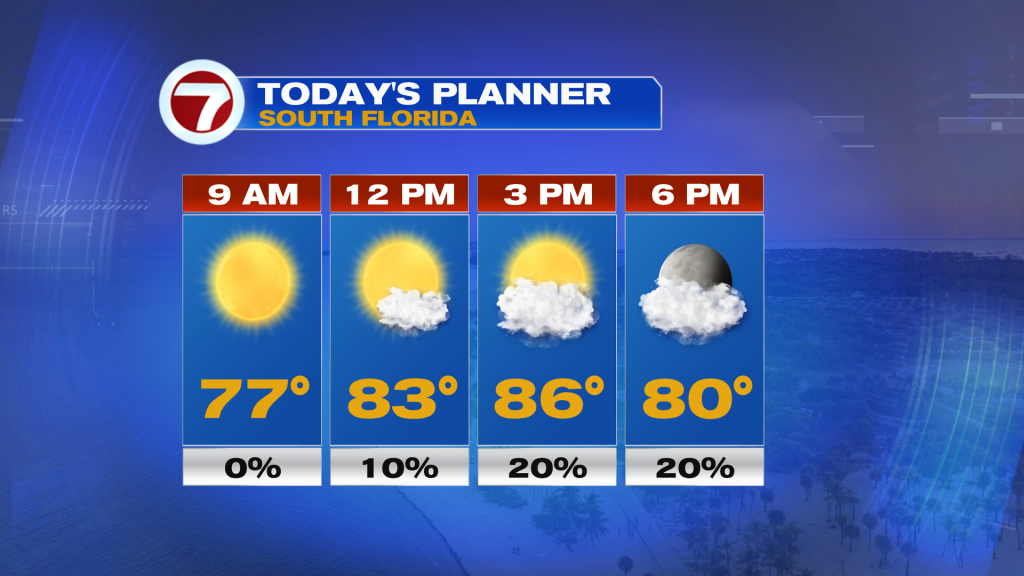 Record heat will be possible Sunday, especially for Miami and Fort Lauderdale with a forecast high of 86F, which would tie the record of 86F for both cities.