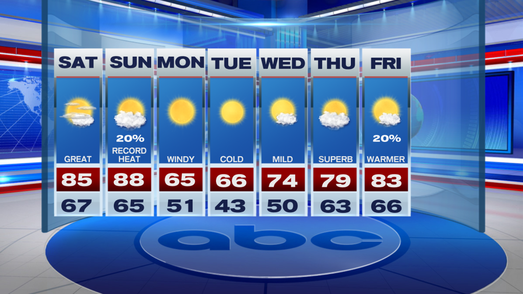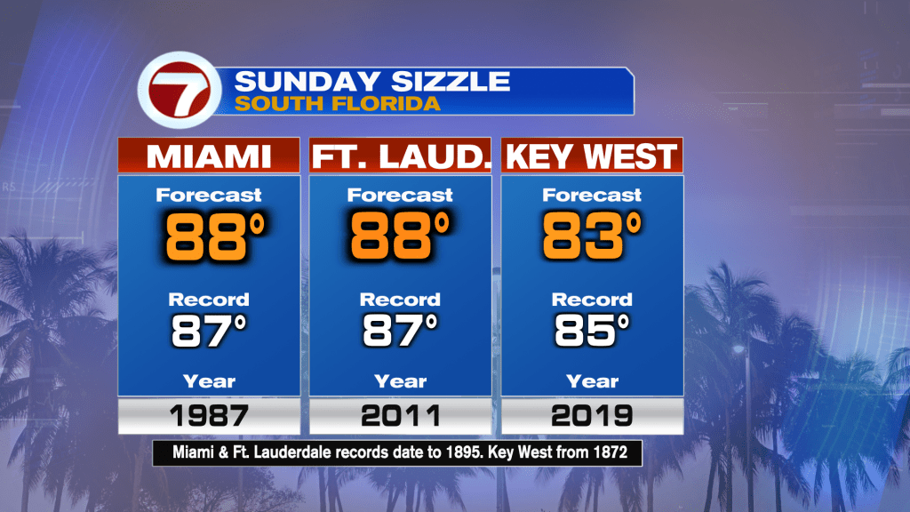 Sunday will be warmer of the two days, with record heat possible across South Florida.